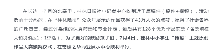 童心觀世界,妙手著文章| 桂林中小學(xué)生“搏疫”主題原創(chuàng)作品大賽頒獎儀式順利舉行!