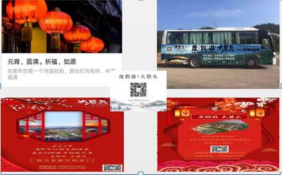 為更好地宣傳推廣大碧頭國際旅游度假區(qū),營銷中心堅(jiān)持線上線下的聯(lián)動(dòng)宣傳,協(xié)助進(jìn)行員工大巴車身廣告上畫、客房部客用品及標(biāo)識(shí)標(biāo)牌設(shè)計(jì)、景區(qū)管理部的園區(qū)觀光車車貼設(shè)計(jì)、撰寫旅游區(qū)用于高鐵宣傳的相關(guān)簡(jiǎn)介等工作。對(duì)外,積極督促客立方公司完成了新年祝福H5制作、情人節(jié)軟文及元宵節(jié)軟文制作;與全州、永州等地的大型超市洽談了招聘廣告位擺放事宜;與分眾傳媒、新潮傳媒公司洽談了廣告投放事宜。