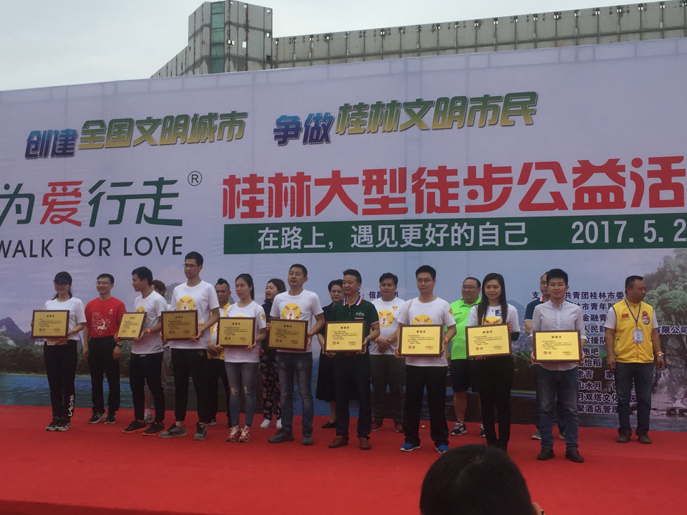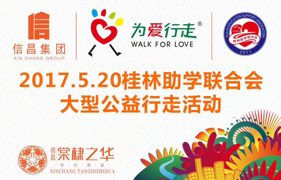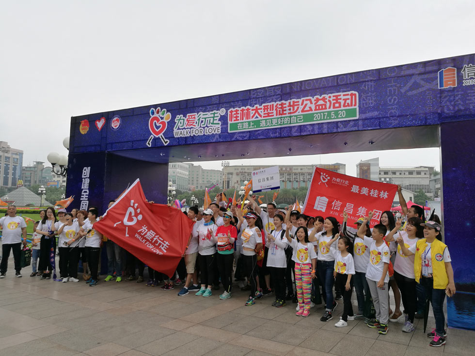 5月20日,桂林助學(xué)聯(lián)合會(huì)等社會(huì)公益組織舉辦的以“創(chuàng)建全國(guó)文明城市 爭(zhēng)做桂林文明市民”為主題的“為愛行走”大型徒步公益活動(dòng),近兩千名青少年和市民參加了這一活動(dòng)?!盀閻坌凶摺笔菍ⅰ斑\(yùn)動(dòng)、公益、城市文化”融為一體,傳播正能量,倡導(dǎo)萬(wàn)眾健身、全民公益的大型徒步活動(dòng)